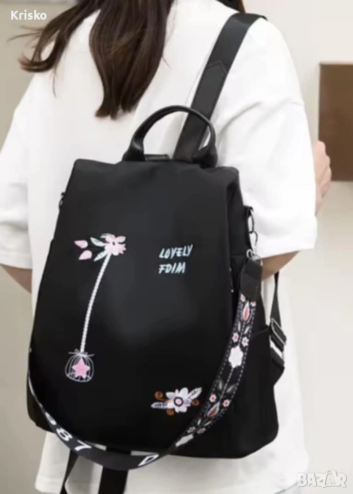Противокражбена дамска раница с флорална бродерия „Lovely“ → Обява 53042479