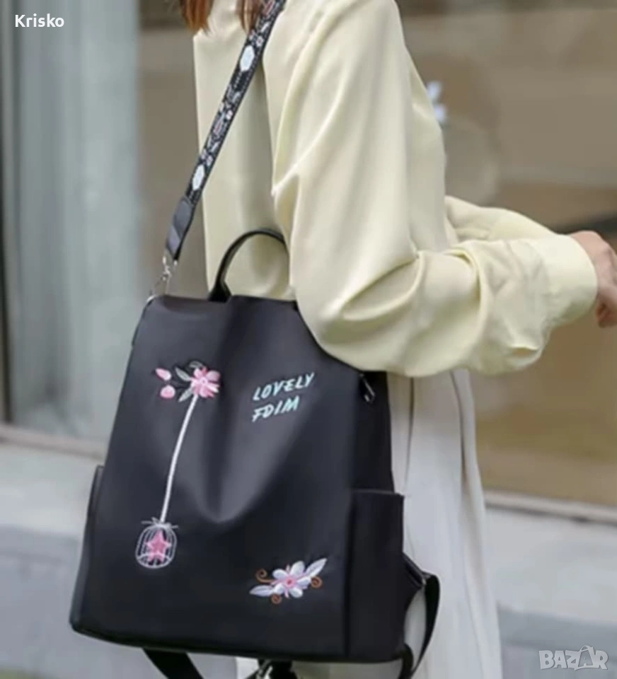 Елегантна и практична дамска раница с противокражбен дизайн, създадена за сигурност и стил в едно. Основният цип е разположен отзад към гърба, което значително затруднява неоторизиран достъп до съдържанието. Черният цвят и нежната флорална бродерия придават женствен и модерен вид, подходящ за ежедневие, пътуване и градска среда. Характеристики: ✅ Противокражбен дизайн (скрит заден цип) 🌸 Флорална бродерия Цвят: черен Удобна горна дръжка Регулируема презрамка – може да се носи като раница или през рамо Лека и компактна, но практична Подходяща за ежедневна употреба и пътуване