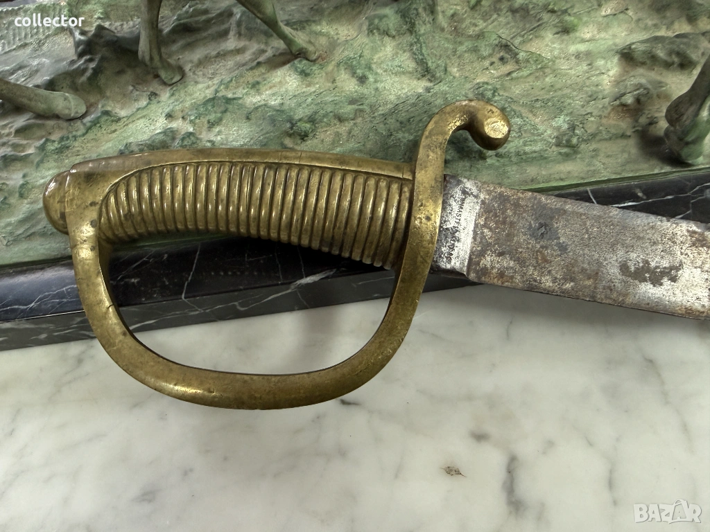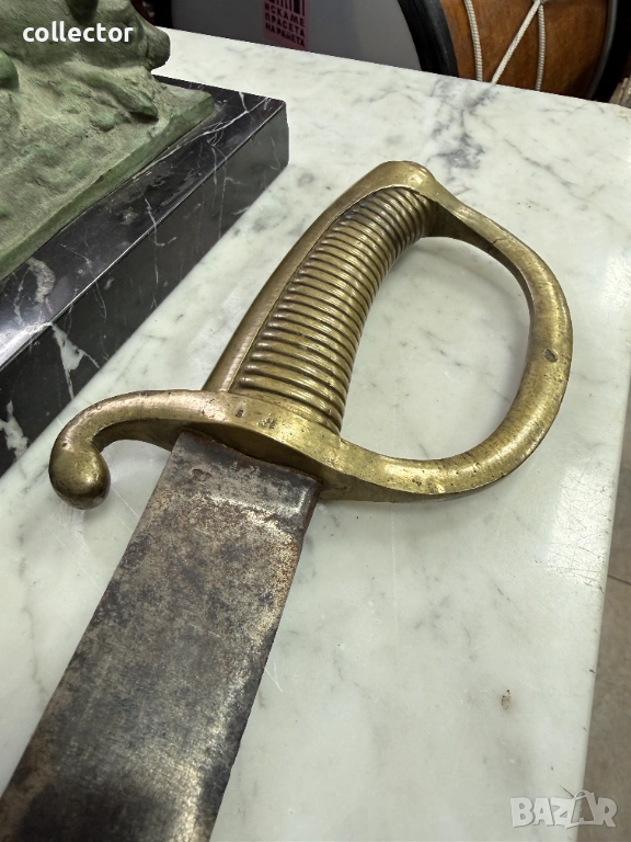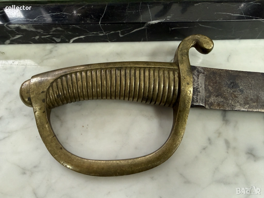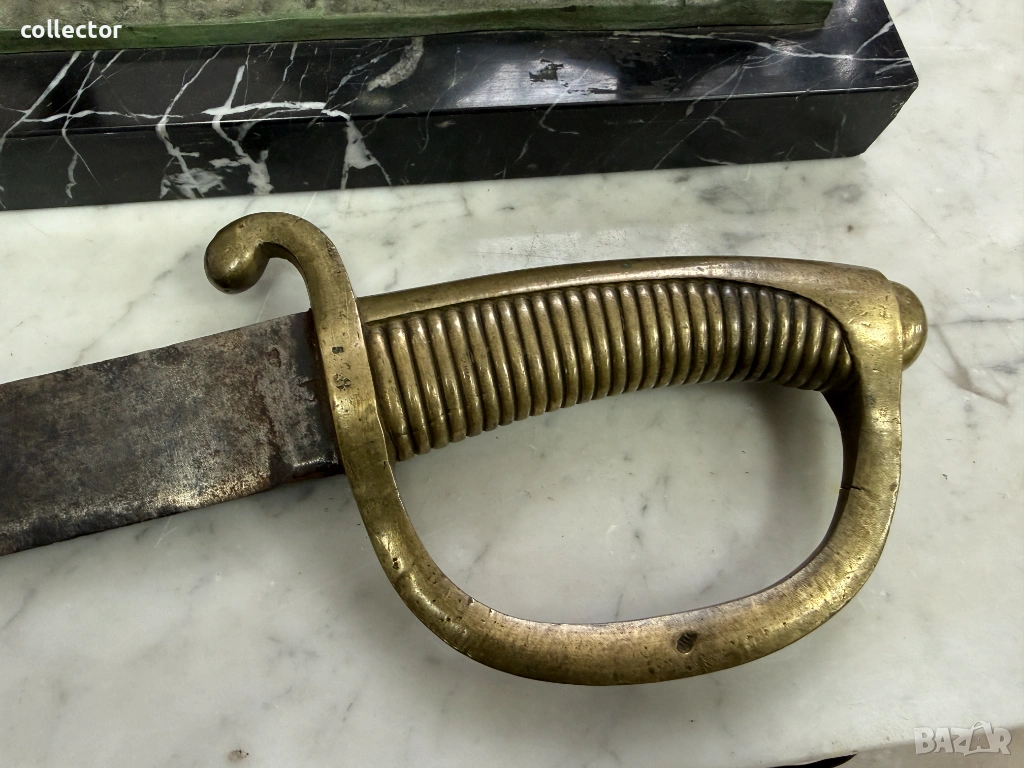 Френска пехотна сабя-брикет от XI век от Наполеоновия период. Всеки френски пехотинец е носил такава. Предлага се в състояние по снимките. Хубави маркировки по остриети и гарда.