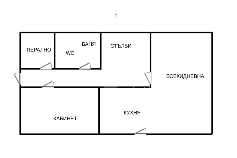 На първо ниво са разположени: коридор, баня с тоалетна, перално помещение, кабинет /спалня на гости/, просторна дневна-площ 95 кв.метра.