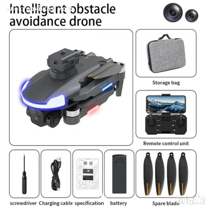 Честота: 2.4G; Свързаност: Връзка чрез приложение и дистанционно управление; Разстояние за дистанционно управление: До 500 метра; Контролни канали: 4 канала; Време за полет: 22 минути; Въздушна фотография: Да; GPS: Да; Жироскоп: 6-осен; Размер на екрана: 1/5.5 инча; Спецификации на камерата: 1080P HD видеозаписи; Интеграция на камерата: Камера включена; Работна честота на самолета: 2.4 GHz; Капацитет на батерията на безпилотния летателен апарат: 7.4V 1800mAh; Максимално време на полет: 23 минути; Сензорна система: Пълен всепосочен; WiFi FPV: Да; Тегло: 125 гр; Поддържани APP езици: Английски; Подвижна/сменяема батерия: Да; Видео формат: MP4; Максимална видео резолюция: 1080i/P (1920x1080); Максимална устойчивост на скорост на вятъра: 10 км/ч; Максимално тегло при излитане: 1 кг