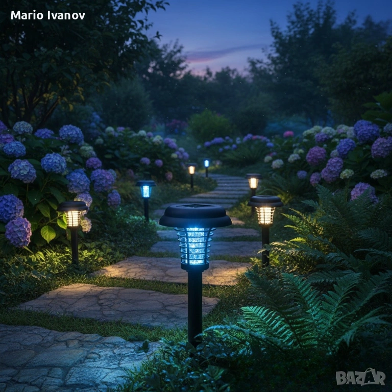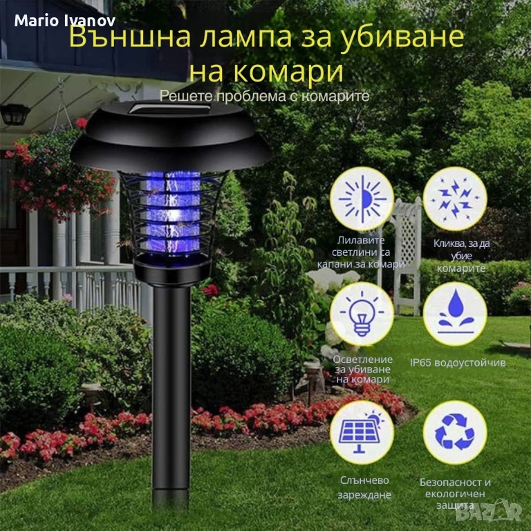 Соларна лампа против комари за открито – комплект 2 броя с UV защита и декоративно осветление → Обява 53043336