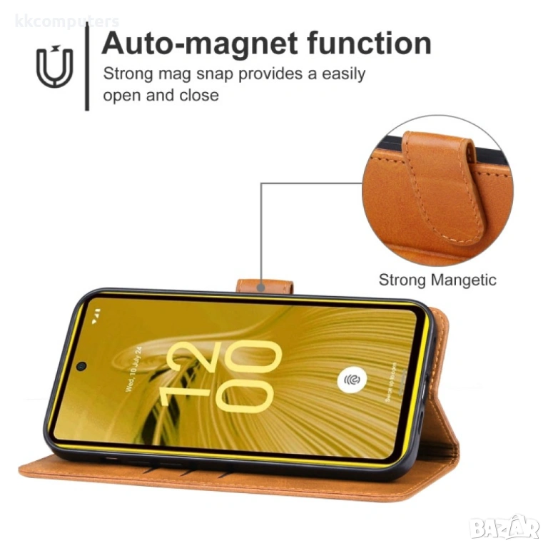 - Стилен сгъваем калъф, предвиден да пази Вашето мобилно устройство от наранявания