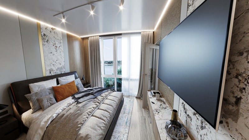 Апартаментите в River Residence са проектирани с ясна концепция за съвременен градски живот, в който комфортът, функционалността и естетиката са в пълен баланс. Интериорната визия съчетава естествени материали, изчистени линии и модерни решения, които създават усещане за простор, светлина и уют. Всички апартаменти са с френски прозорци от пода до тавана, осигуряващи максимално количество естествена светлина и силна визуална връзка с външната среда.