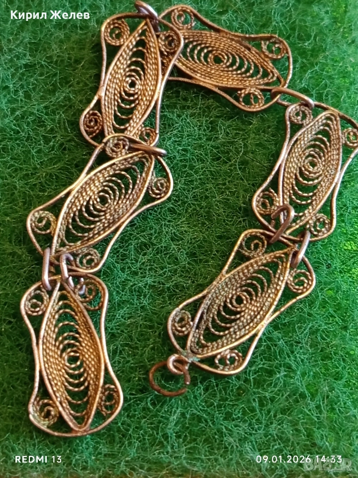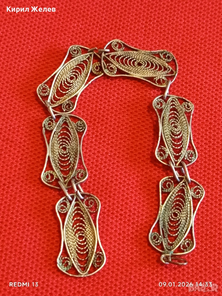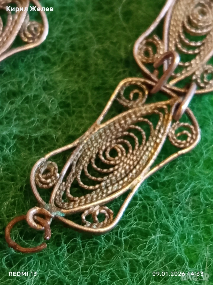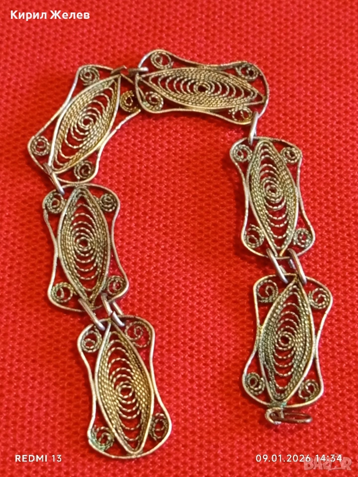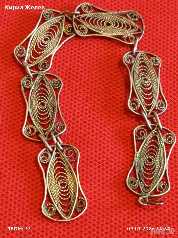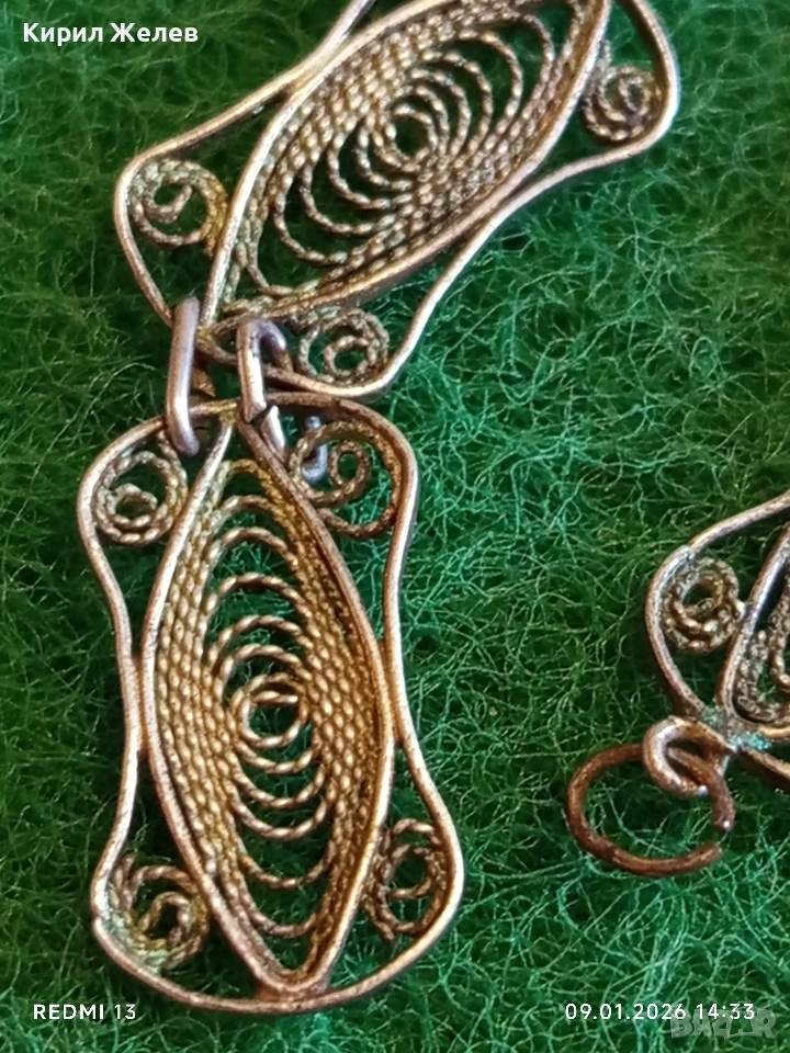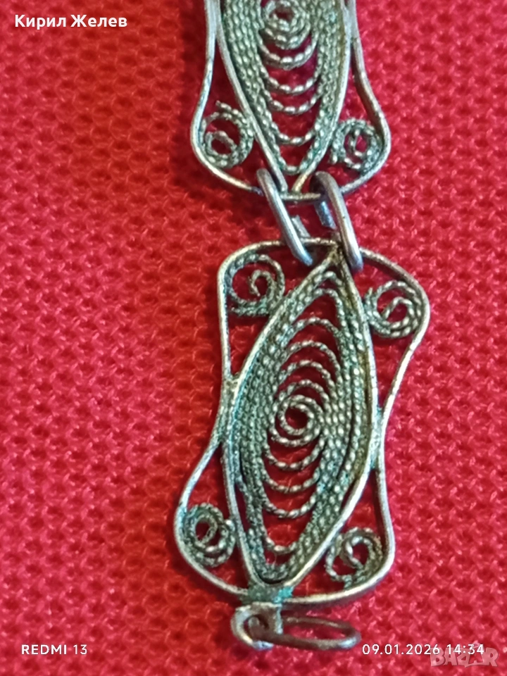 Част от сребърно бижу филигранна възрожденска плетка майсторска изработка 15046