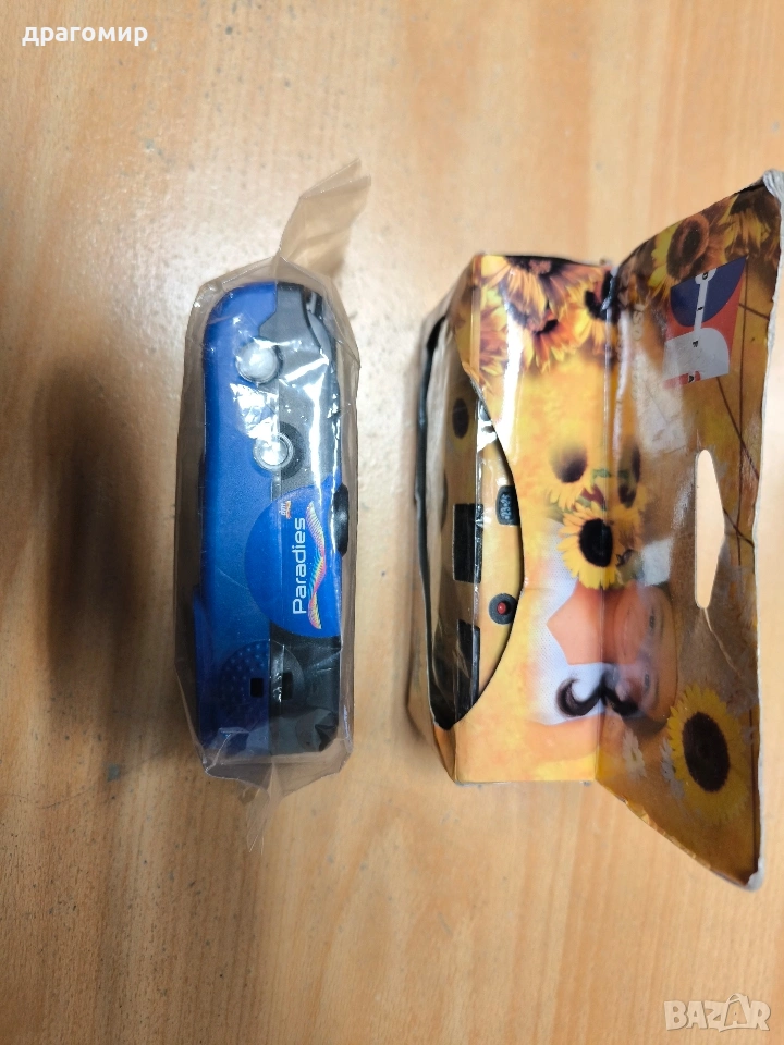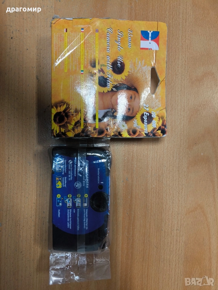 продавам фотоапарати за еднократна употреба,един брой 5 евро,за 10 броя 40 евро, имам още много други фотоапарати, камери, обективи, чанти, светкавици, батерии, зарядни устройства, касети, филтри, ремъци, ленти, при закупуване на повече неща отстъпка