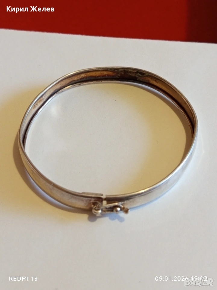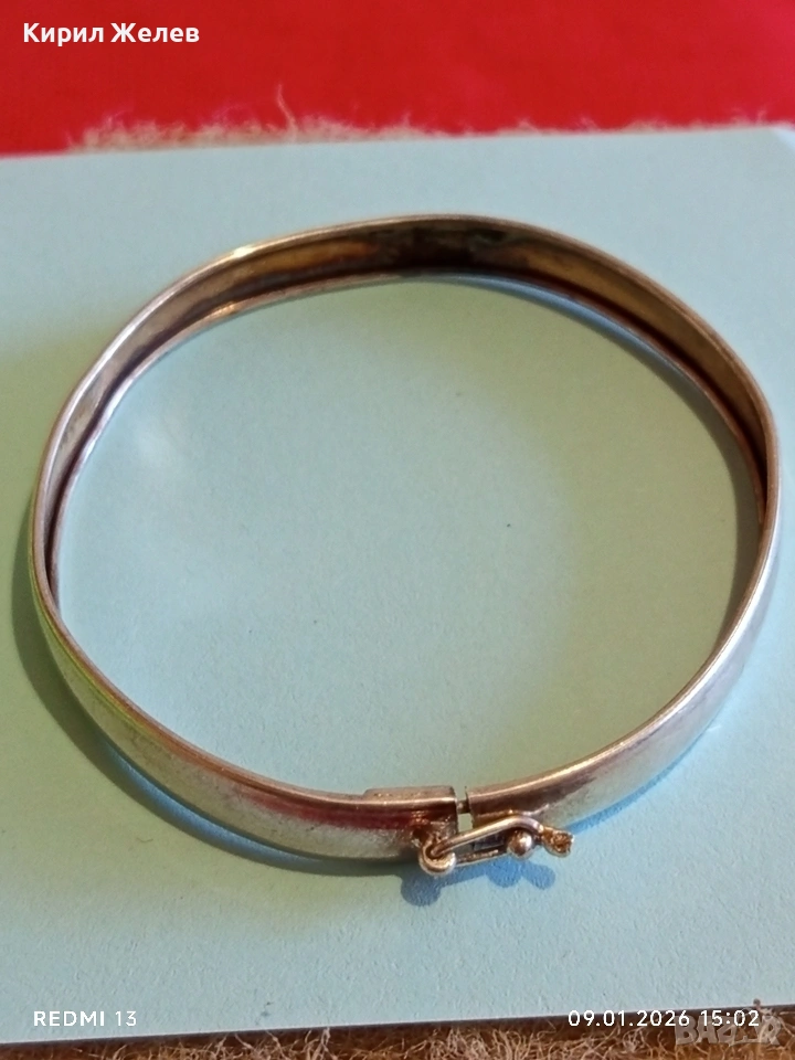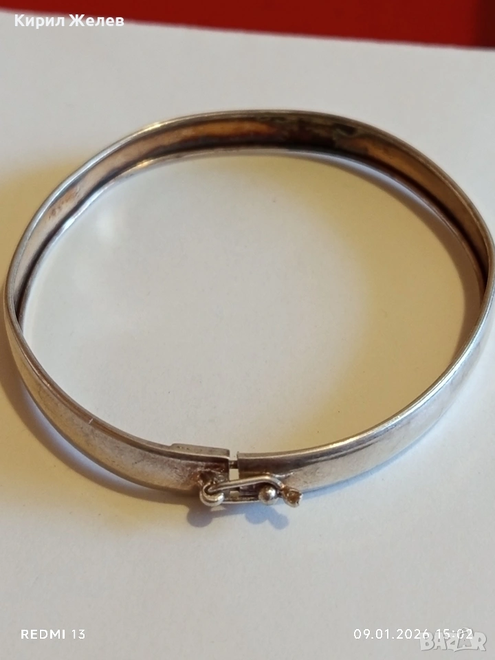 Винтидж сребърна гривна тип Белезник закопчалка тип панта интересна 53065