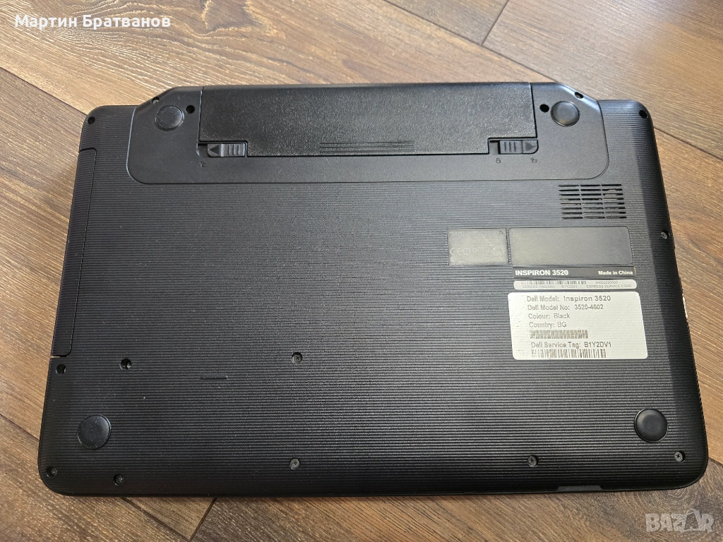 Продавам лаптоп Dell Inspiron 3520. Батерията е нова, купена преди 2-3 години. Работи отлично, без счупени или сцепени пластмаси. Леки следи от употреба. Със зарядно.