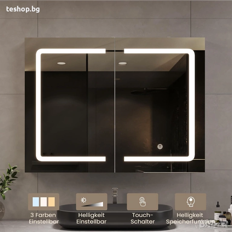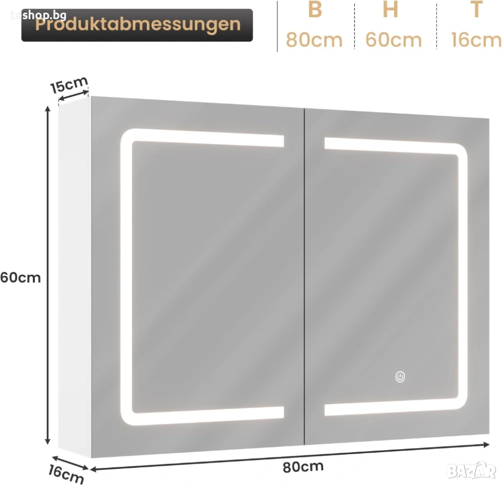 Стилен и многофункционален: огледален шкаф за баня DICTAC с осветление използва дизайн за монтаж на стена, 80 см широкият огледален шкаф за баня обикновено се поставя директно над мивката, без да заема подово пространство и осигурява голямо място за съхранение. Може да се комбинира с всякакъв стил на декорация и да се използва перфектно в банята, кухнята, хола, спалнята, входното пространство и др.