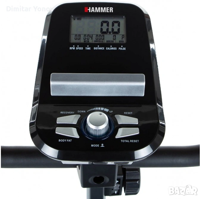 Велоергометър Cardio T3 от HAMMER HAMMER Cardio T3 - Перфектното начало на вашата тренировка за издръжливост. Компактен и ефикасен, Cardio T3 е идеалният кардио уред за тренировки в домашна среда. Ергометърът има ръчна настройка на съпротивлението, благодарение на която можете лесно да определите степента на трудност. Тренировката с него е не само щадяща за ставите ви, но и подобрява вашата физическа форма и здраве. Тренировките у дома ви поддържат във форма и пълни с жизненост. - Оптимизира сърдечно-съдовата система - Намалява мастните натрупвания - Укрепва краката и седалищните мускули - Подобрява общото физическо състояние Велоергометър Cardio T3 от HAMMER - Технологии и характеристики Cardio T3 се задвижва от безшумен ремък. Съпротивлението се регулира от спирачна система с постоянен магнит, която се регулира ръчно. 6-килограмов маховик и качествени сачмени лагери са част от висококачествените технически характеристики на Cardio T3. Тренировъчният компютър с ярък LCD дисплей показва всички важни данни за тренировката: разстояние, време, изгорени калории, скорост, обороти в минута и пулс. Ограничаване на пулса и измерване на сърдечната честота в покой Сърдечната честота се измерва благодарение на вградения контактен пулсомер. За ефективна тренировка, Cardio T3 има режим за наблюдение на горната граница на сърдечната честота, благодарение на който можете да видите общото си физическо състояние и възстановяване. Позицията на седалката е регулируема, което осигурява максимална ергономичност. Транспортните колела улесняват преместването на Cardio T3 из дома ви. Регулируемите крачета осигуряват максимална стабилност върху неравни повърхности