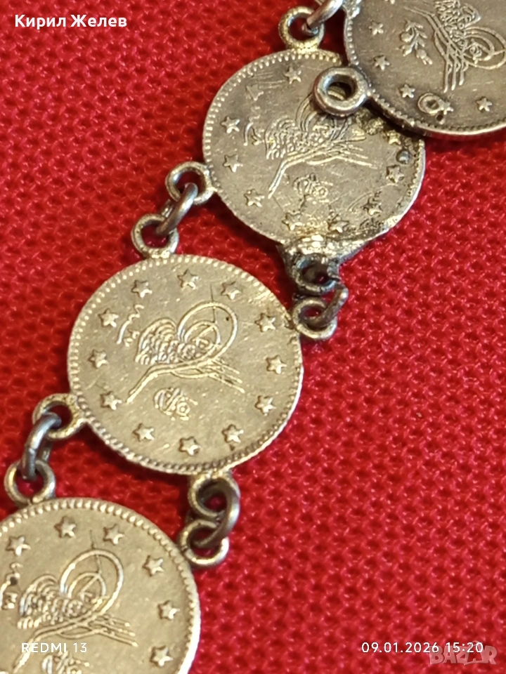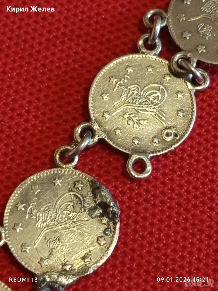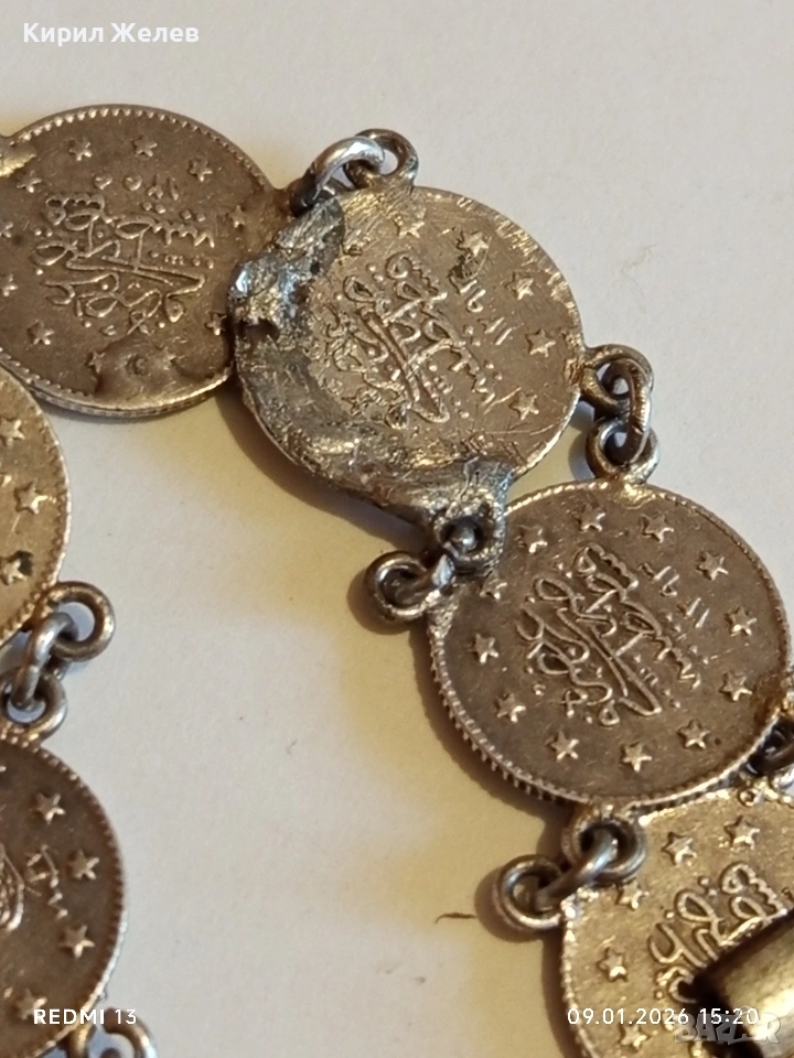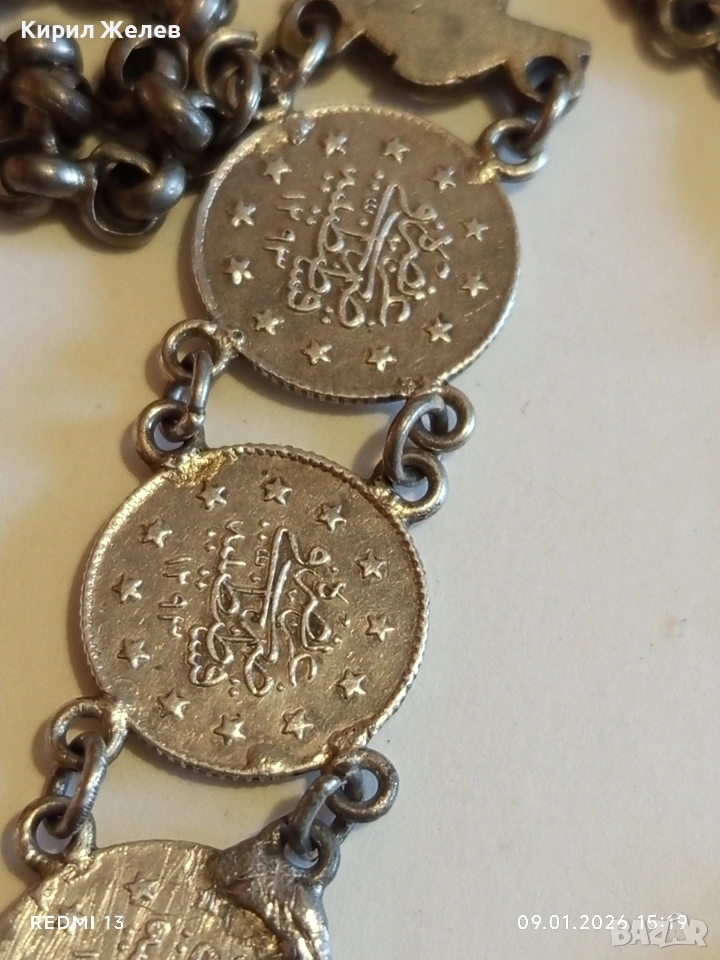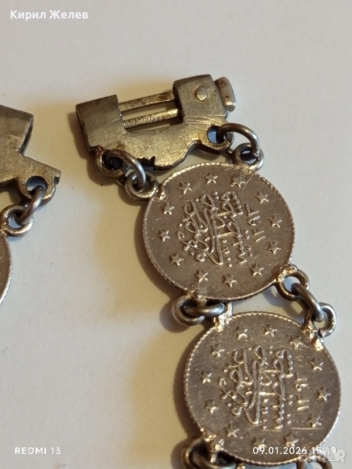 Сребърна гривна с Турски монети тугла печат на Султан 52741