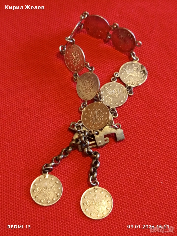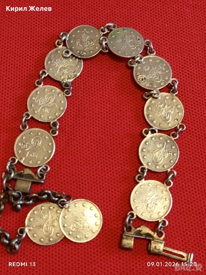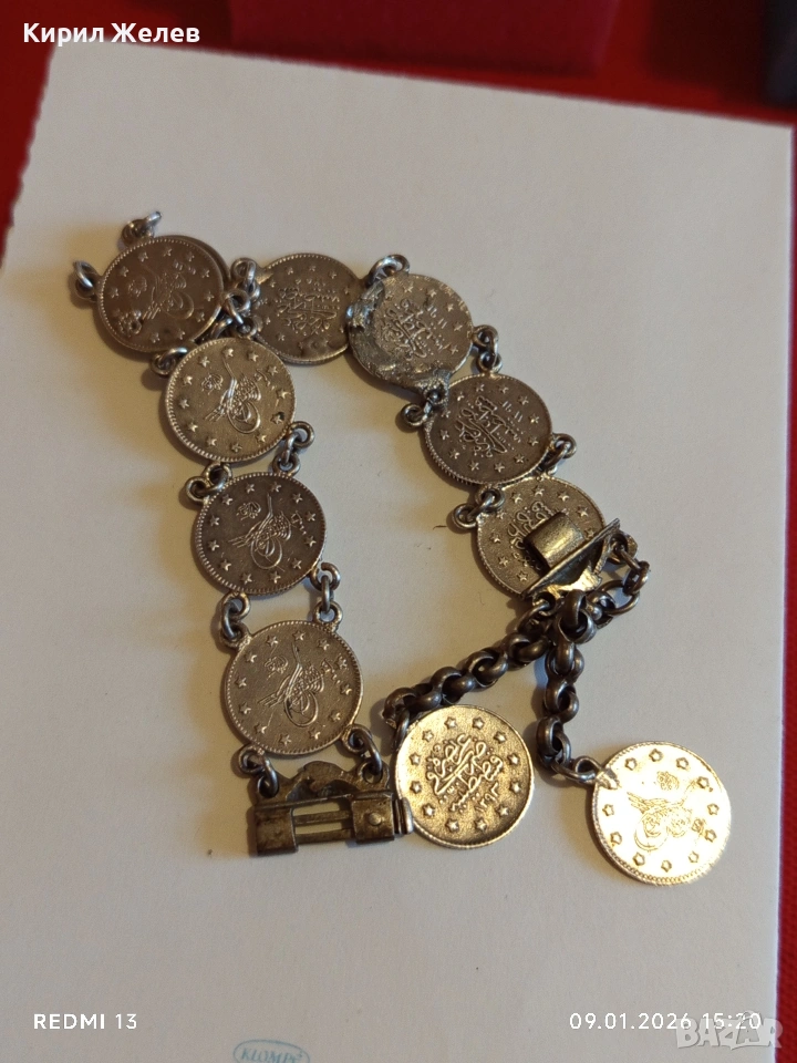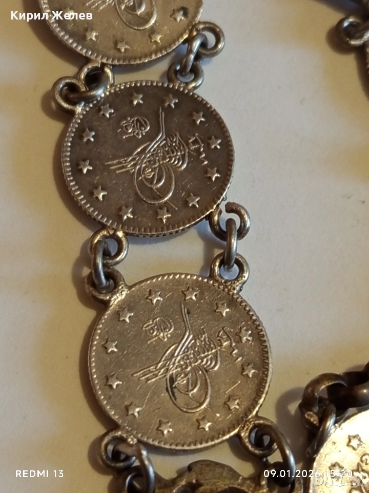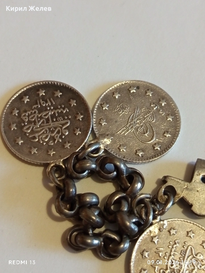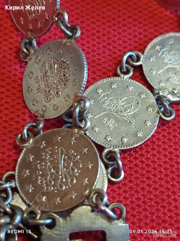 Сребърна гривна с Турски монети тугла печат на Султан 52741