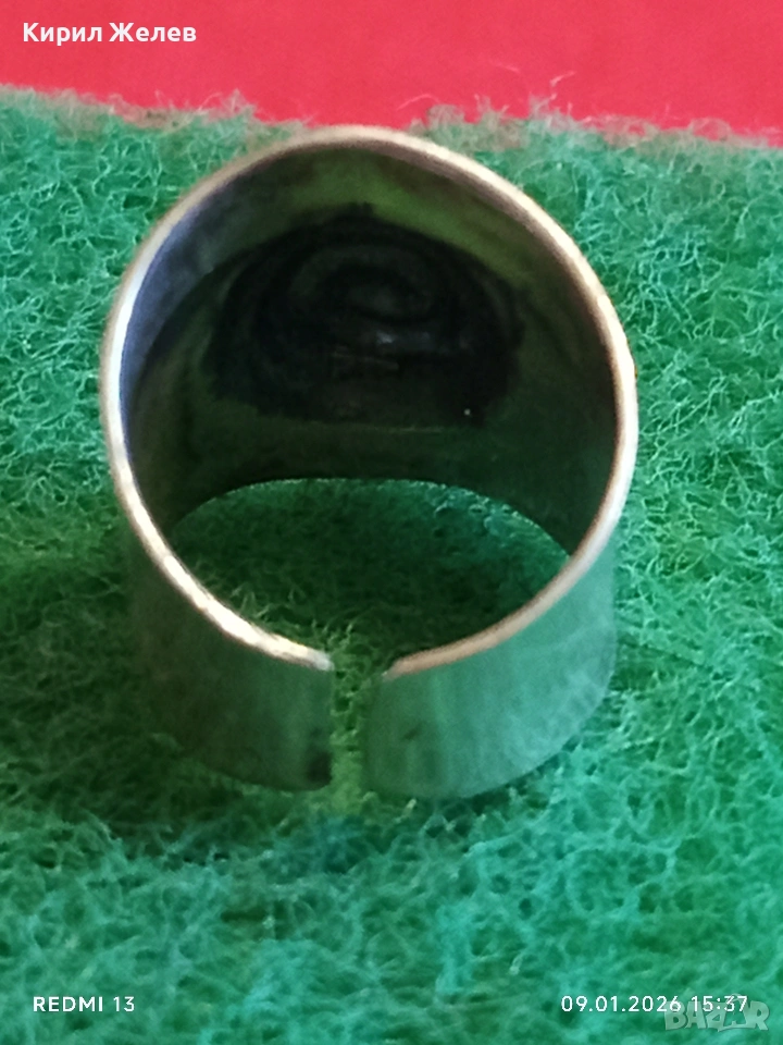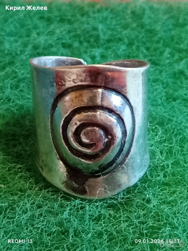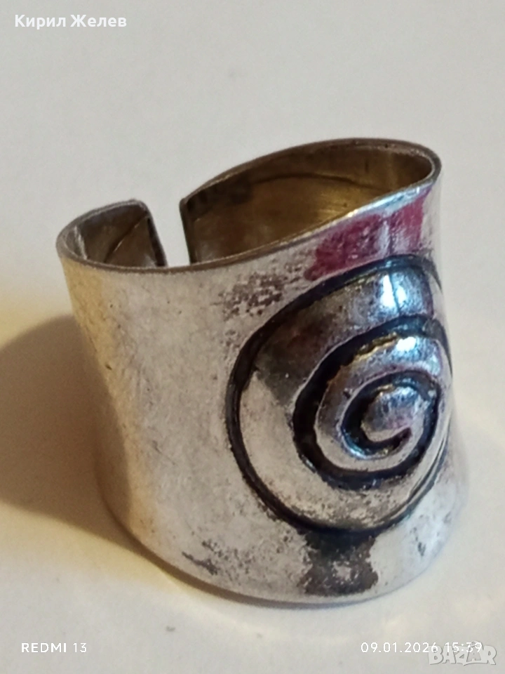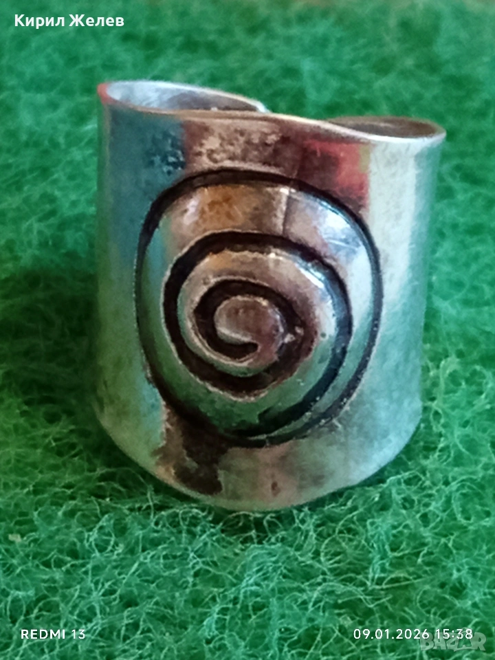 Сребърен пръстен с широк дизайн и релефна спирала Бохо стил интересен 51959