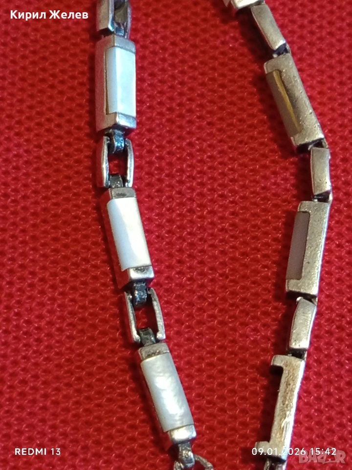 Сребърна гривна тип Кламер с Седеф подходящ аксесоар за ежедневието 52608