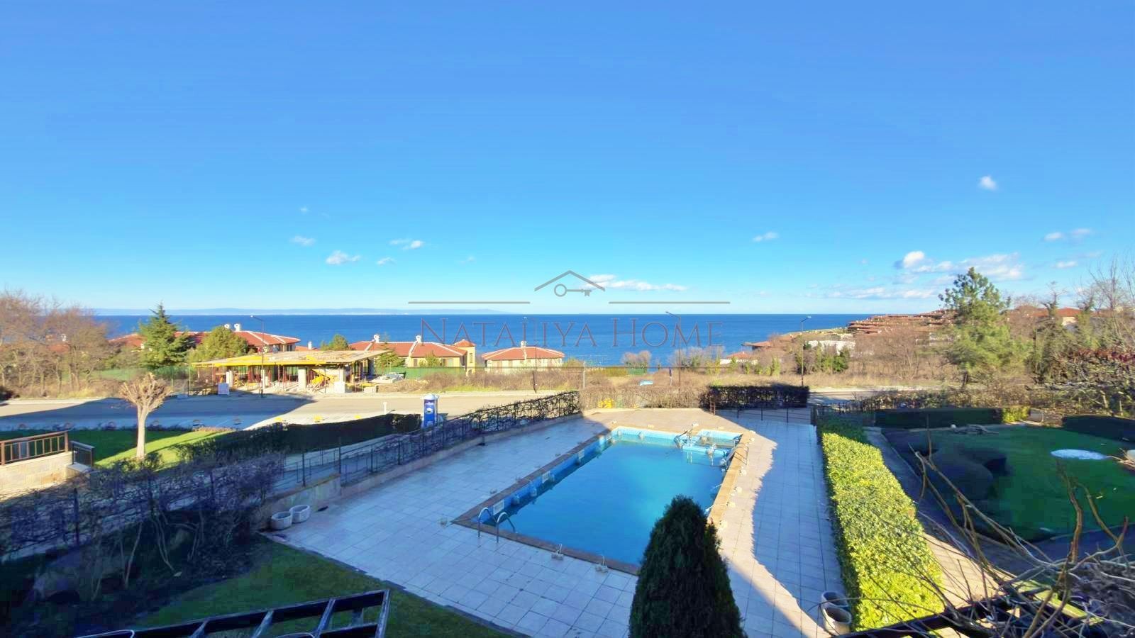 Апартаменът е с площ от 60 кв.м, разположен на втори етаж. Жилището се състои от просторна всекидневна с кухненски бокс и трапезария , спалня, баня с тоалетна и две тераси към всяка стая има излаз на самостоятелна тераса, откъдето се разкрива морската панорама. Апартаментът е напълно обзаведен и оборудван , готов за нанасяне веднага. Разположен е в малък, тих и зелен комплекс с контролиран достъп, красив общ басейн и удобен паркинг за собствениците. Имотът впечатлява с прекрасна гледка към морето и изключително уютна атмосфера идеален както за лично ползване, така и за инвестиция.