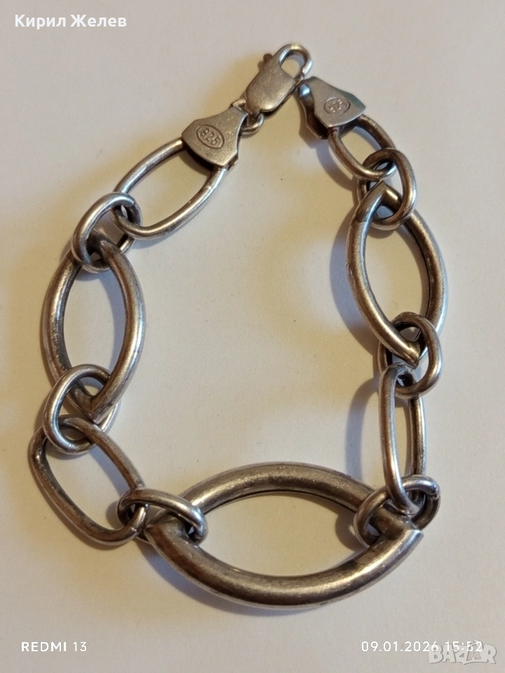 Масивна сребърна гривна много красива майсторска ръчна изработка 53066