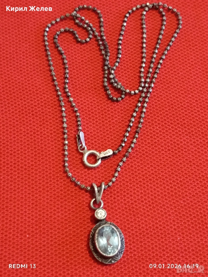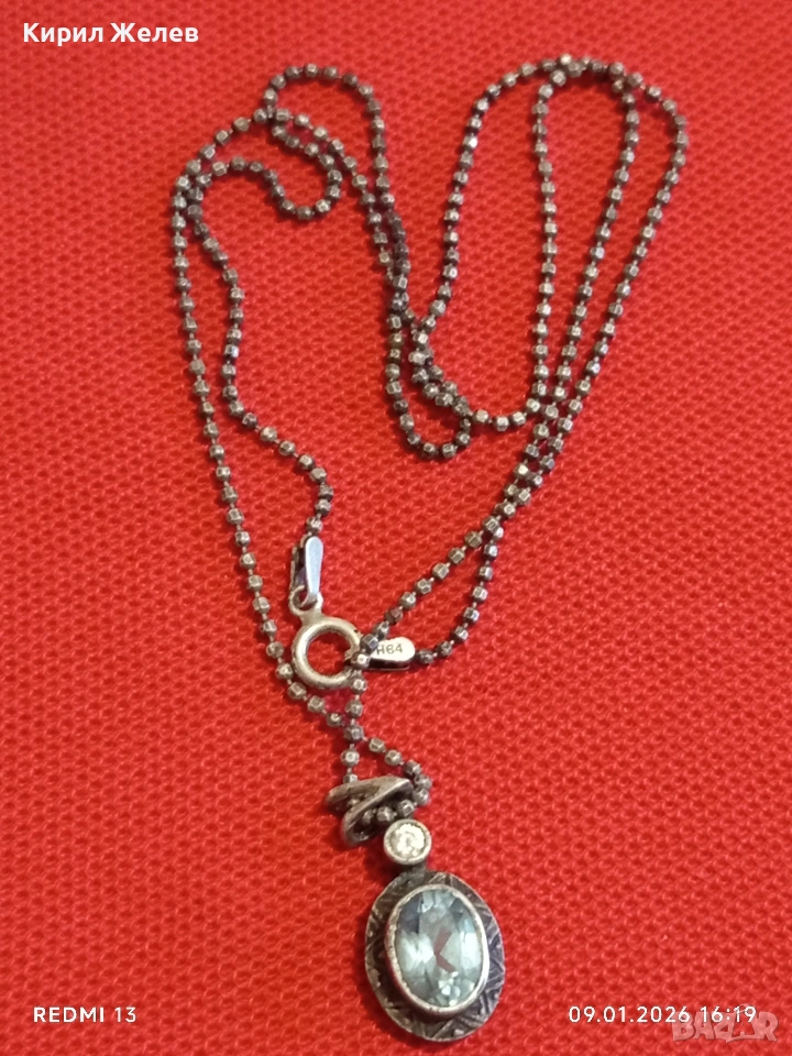 Артистичен сребърен ланец с висулка инкрустирани Аквамарин и кристал Етно Арт бижу 49972