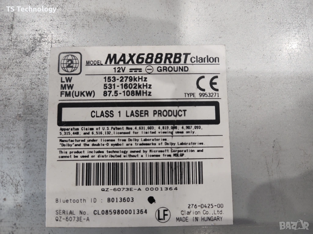 Двоен дин мултимедия Clarion MAX688RBT ( задно USB, вграден Bluetooth, вграден микрофон ) / без липси. Перфектна работа на тъч скрийна. Без забележки !