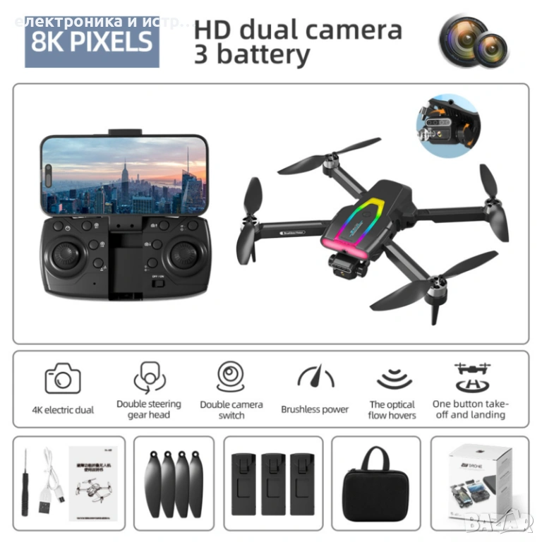Дрон, 8k HD OnXsmart® камера, Двойна камера, RGB цветове