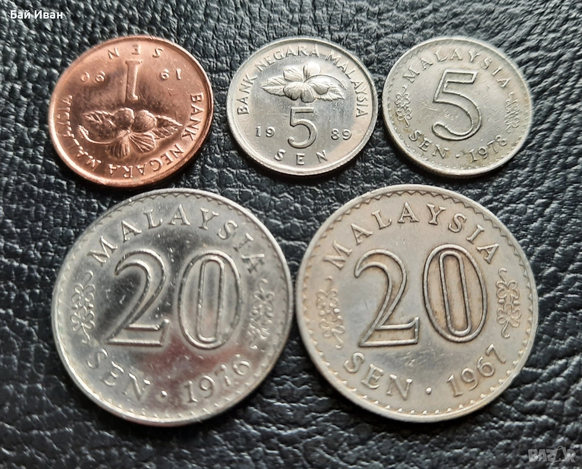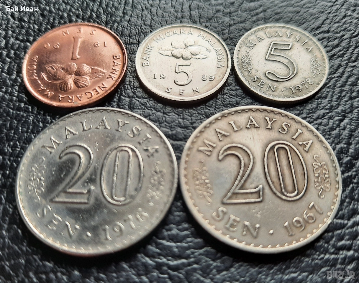 Цената е общо за всичките. Лота включва 1 Сен 1990 г. 5 Сен 1989 г. 5 Сен 1978 г. 20 Сен 1976 г. и 20 Сен 1967 г. Малайзия. Разгледайте и другите ми обяви-има какво да се види ! Моят съвет е-поръчайте си няколко мои артикула,така спестявате от доставка -с една доставка няколко неща !