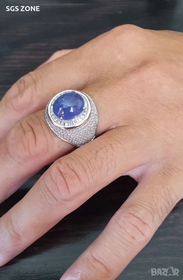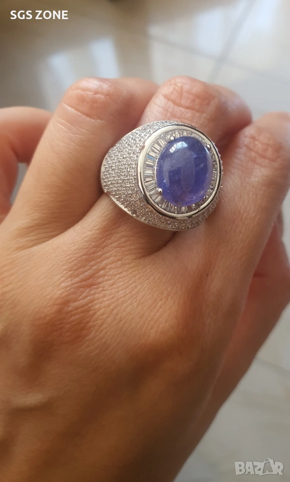 Мъжки сребърен пръстен с танзанит в шлифовка кабошон. Размер 21. Още снимки и видеа на продукта в Instagram и Facebook sgs.zone, уебсайт sgs.zone. Можем да изпратим допълнителна информация чрез Viber. Изпращане Speedy и Эконт. Шоурум в София, Дондуков, 53. Всички продукти са със сертификати и подаръчна кутия. Продукти имат допълнителни български маркировки
