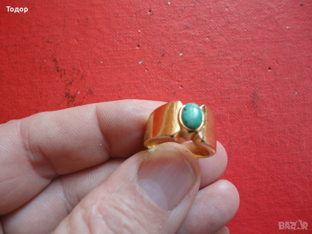 Позлатен пръстен с тюркоаз D.C.S. → Обява 53046425
