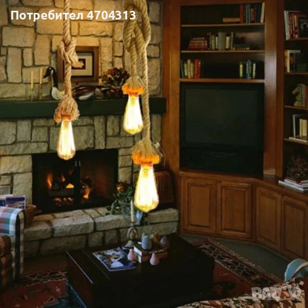 Луксозна двойна висяща лампа конопено въже, винтидж, фасонга Е27
