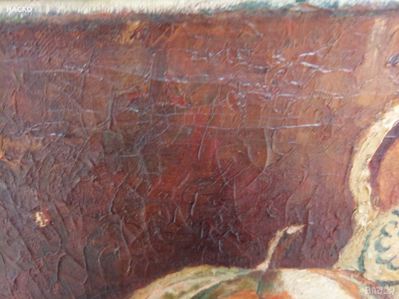 Картината е в абсолютно автентичното си състояние видимо на снимкита.Без реставреция и гримирване.