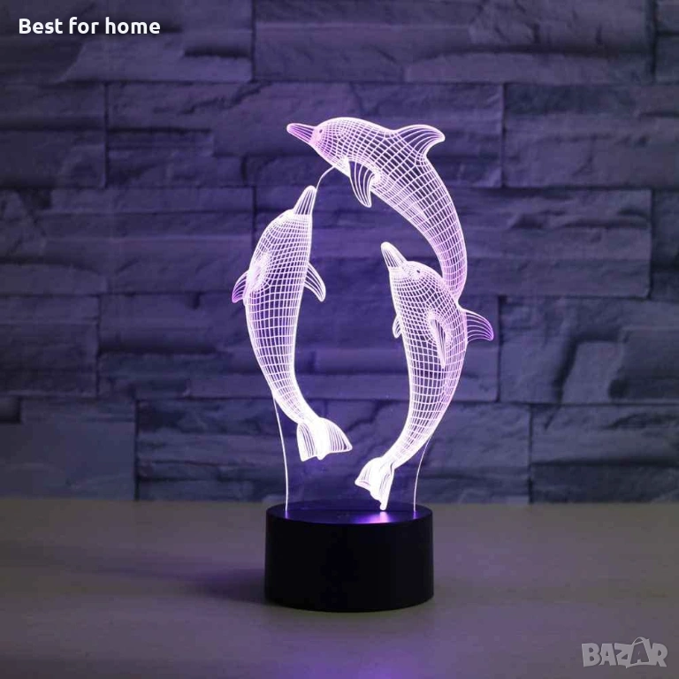 Илюзионни лампи, LED нощни лампи с животни и делфини, 3D нощна лампа за деца, 16 променящи се цвята с дистанционно управление и Smart Touch декоративна лампа за хол, спалня.
