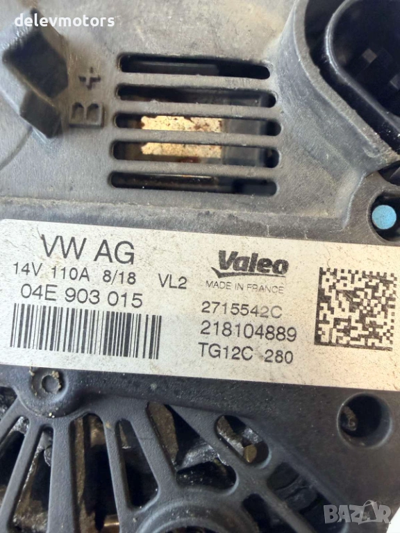 04E903015 / 2715542C Динамо, алтернатор от Seat Arona 1.0 TSI, двигател CHZ, 95 кс., 5 ск., 71 000 км., 2019 г., евро 6B, Сеат Арона 1.0 ТСИ, engine CHZ, 5 sp., 2019 в автоморга Delev Motors, между с. Каменар и с. Куманово гр. Варна.