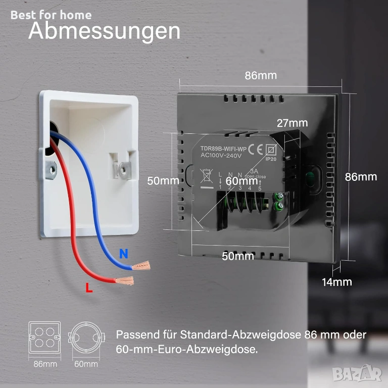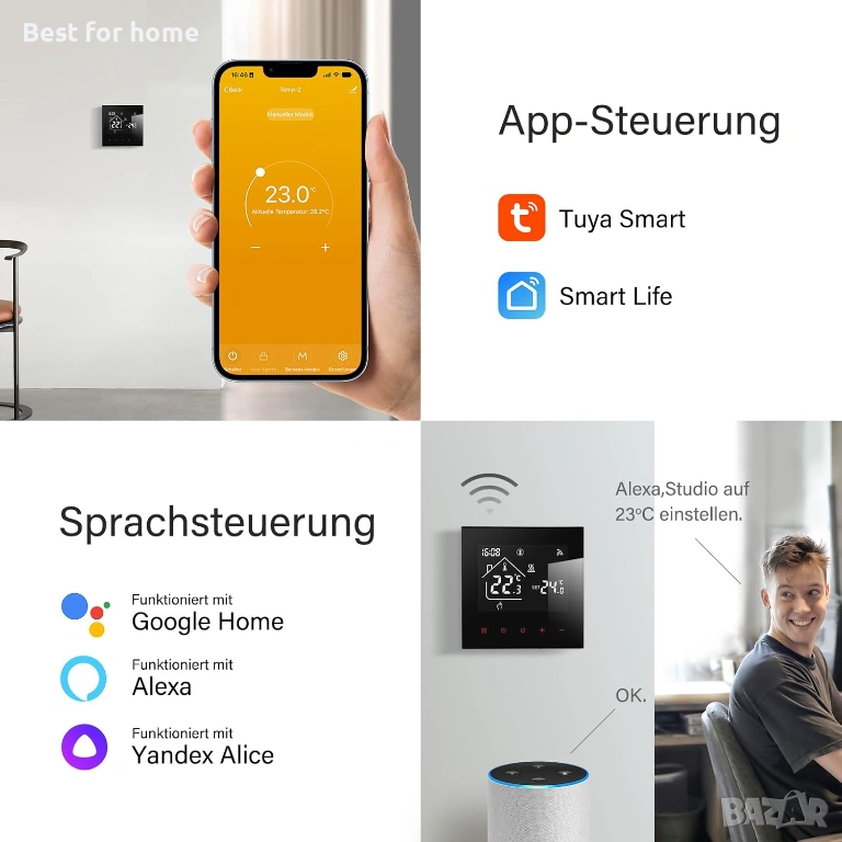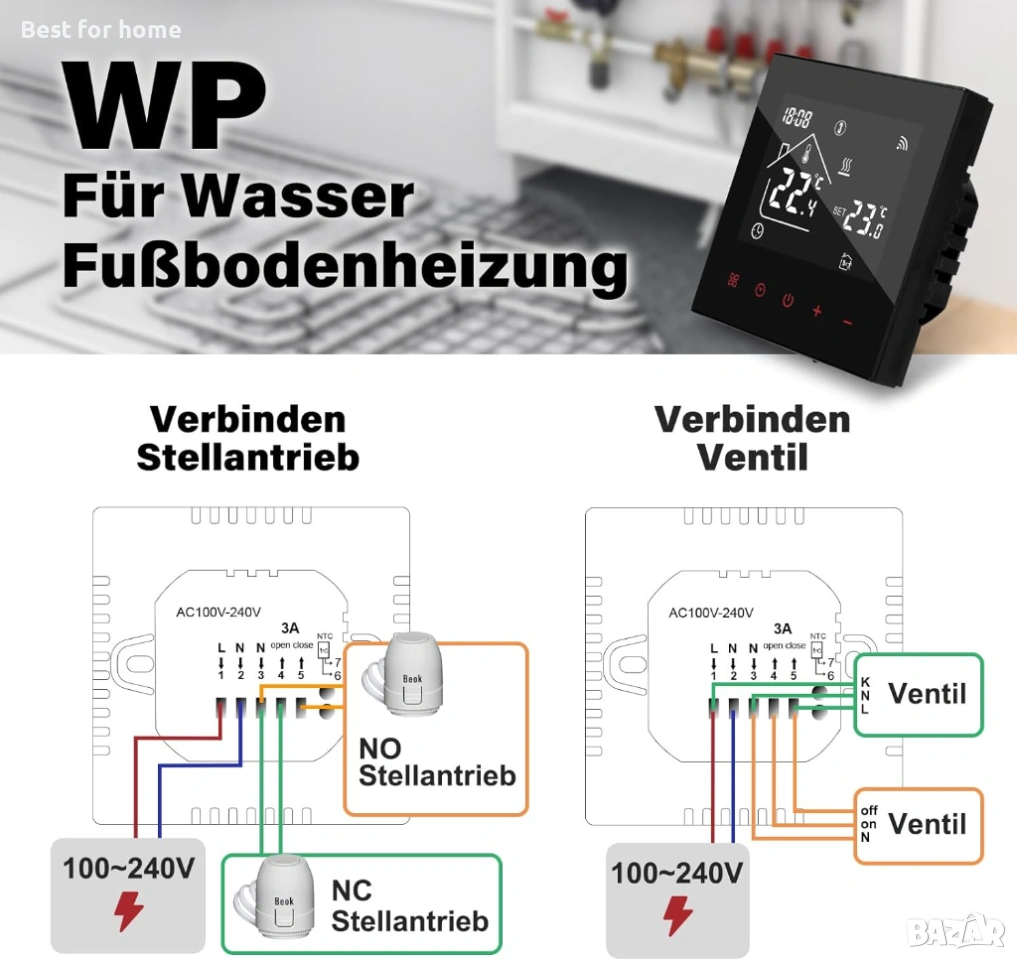 Лесен за употреба: подходящ за водно подово отопление, като например термоглава, електрически вентил и др. Управлявайте стайния термостат отвсякъде и по всяко време чрез приложението за смартфон "tuya".