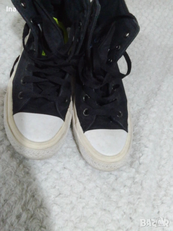 Цената е за двата чифта. Черните са обувани няколко пъти и има леки следи само по белият кант. Високите са носени и имат лека промяна и в цвета на плата, но нямам спомен дали са прани. Стелката е 24см. и на двата чифта.