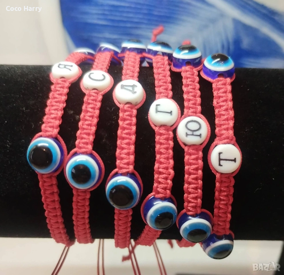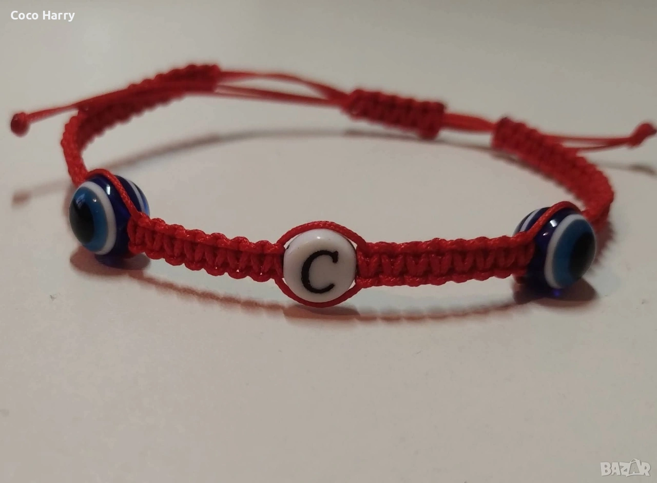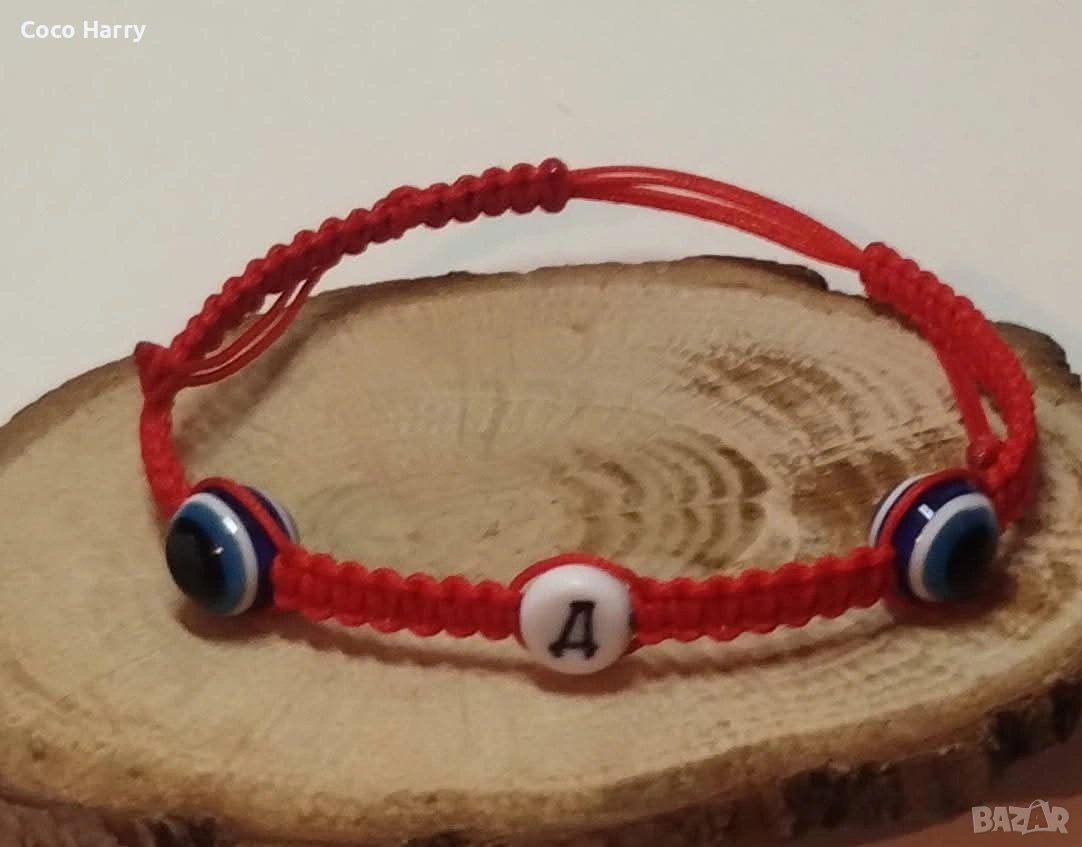 ❤️Гривни с буква и две мъниста синьо око,на червен конец❤️️