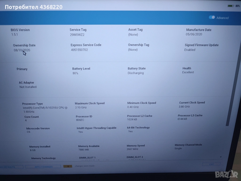 Лаптопа визуално е в много добро състояние, има леки драскотини по долния капак. Батерия е с 0% износване. Има лицензиран Windows 11i Office . Продава се със зарядно.