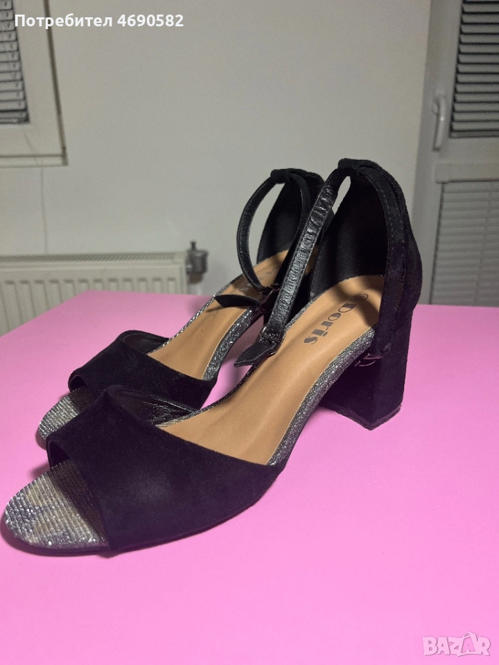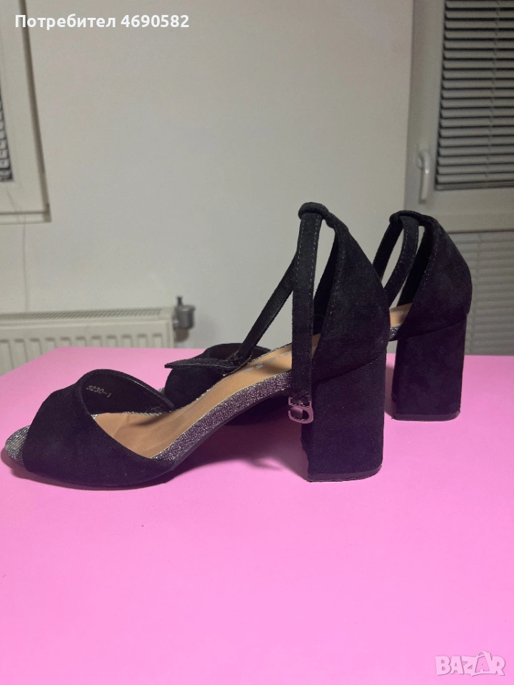 Черни велурени токчета 7см → Обява 53047324