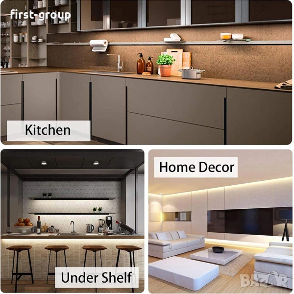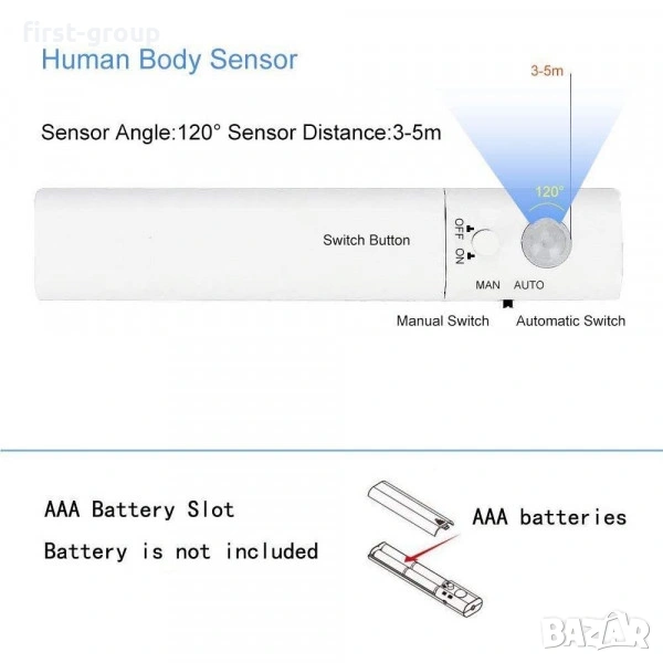 •Работа с батерии или USB -> Нашата LED лента със сензор за движение се захранва от 4 броя AAA батерии (не са включени). С пасивна инфрачервена технология, надеждна производителност и висока чувствителност, той разпознава точно вашите движения. С микро USB порт, тази LED лампа за шкаф може да се захранва директно от USB кабел.