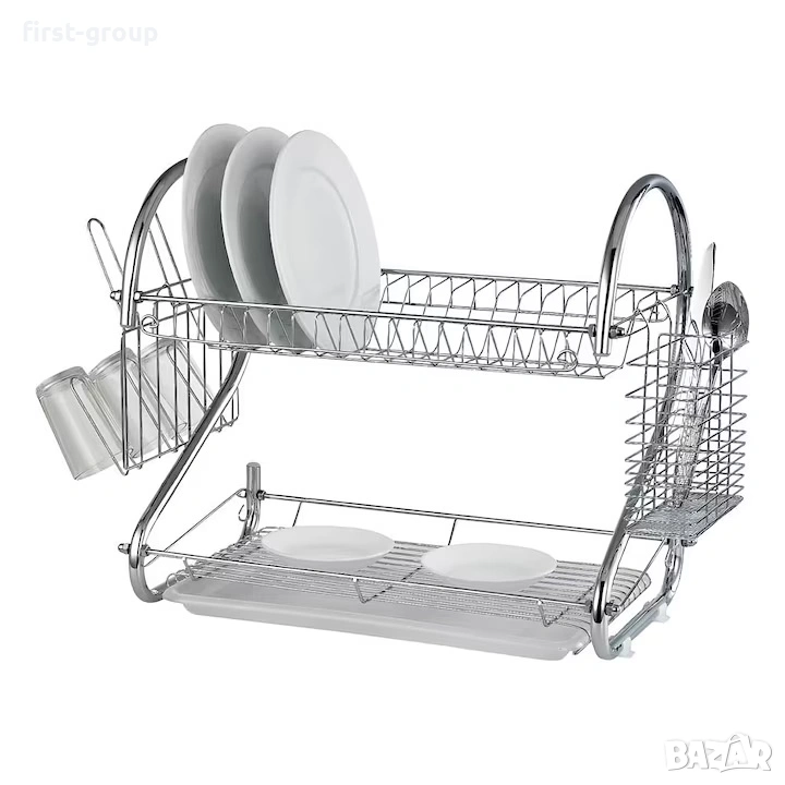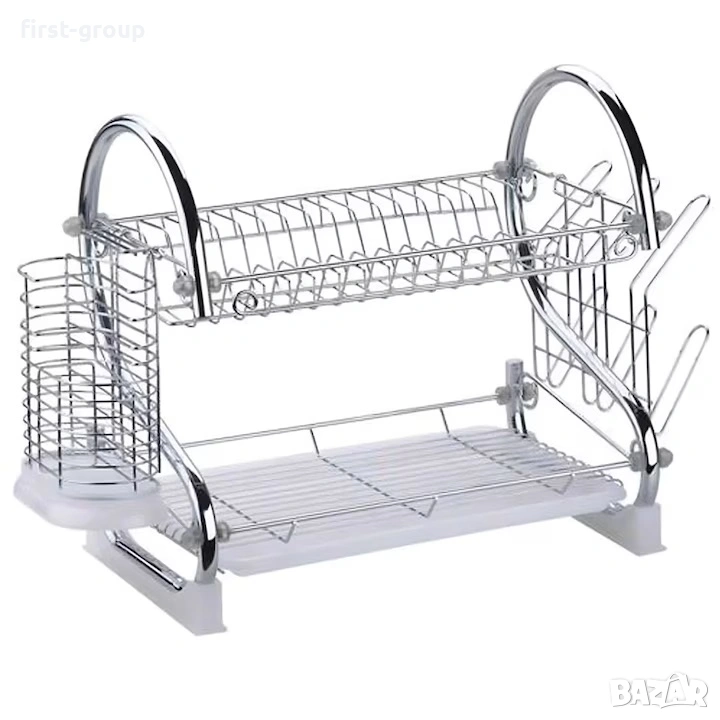 Никелиран двуетажен сушилник за съдове с двойна табла и отделение за прибори