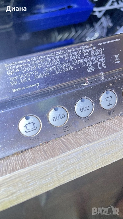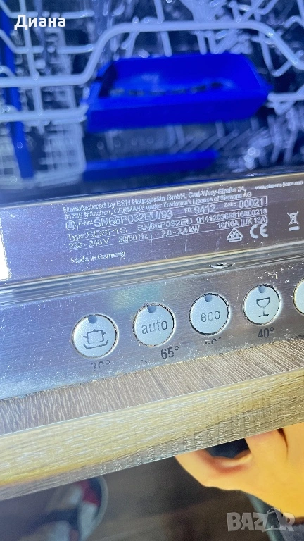 Продавам съдомиялна за вграждане Siemens SN66P032EU. Съдомиялната я купихме с голямо желание, но не е моят уред за използване! Знам, ще ми се смеят някои, но не е използвана повече от 50 пъти! Използвам я само за отцедник! Прекрасно състояние! Отгоре бутоните са поизтрити, не от използване, а от почистване! Когато е отворена ми падат трохички от децата или се праши! Всякакви допълнителни снимки мога да изпратя! Ето и характеристиките й!