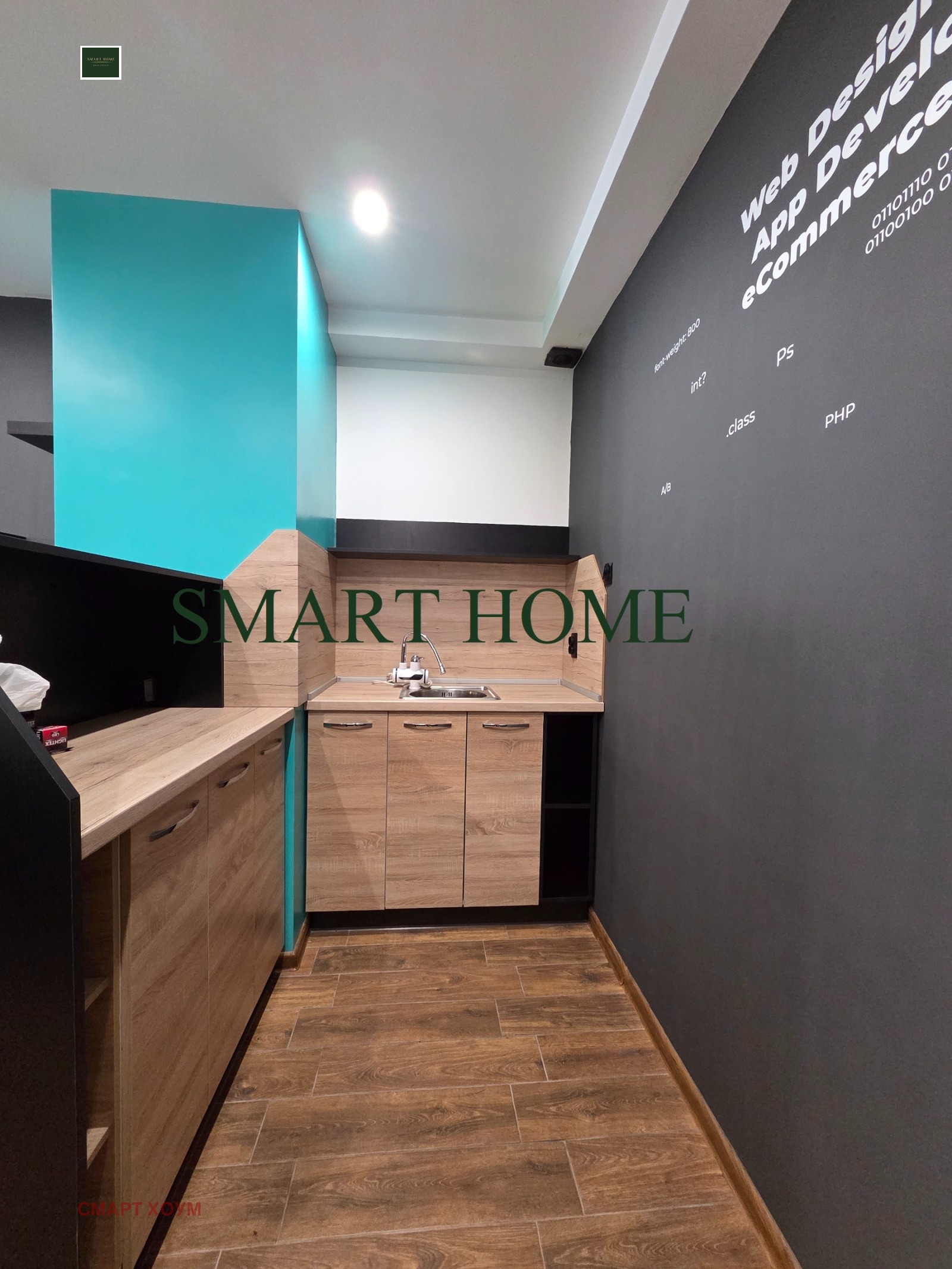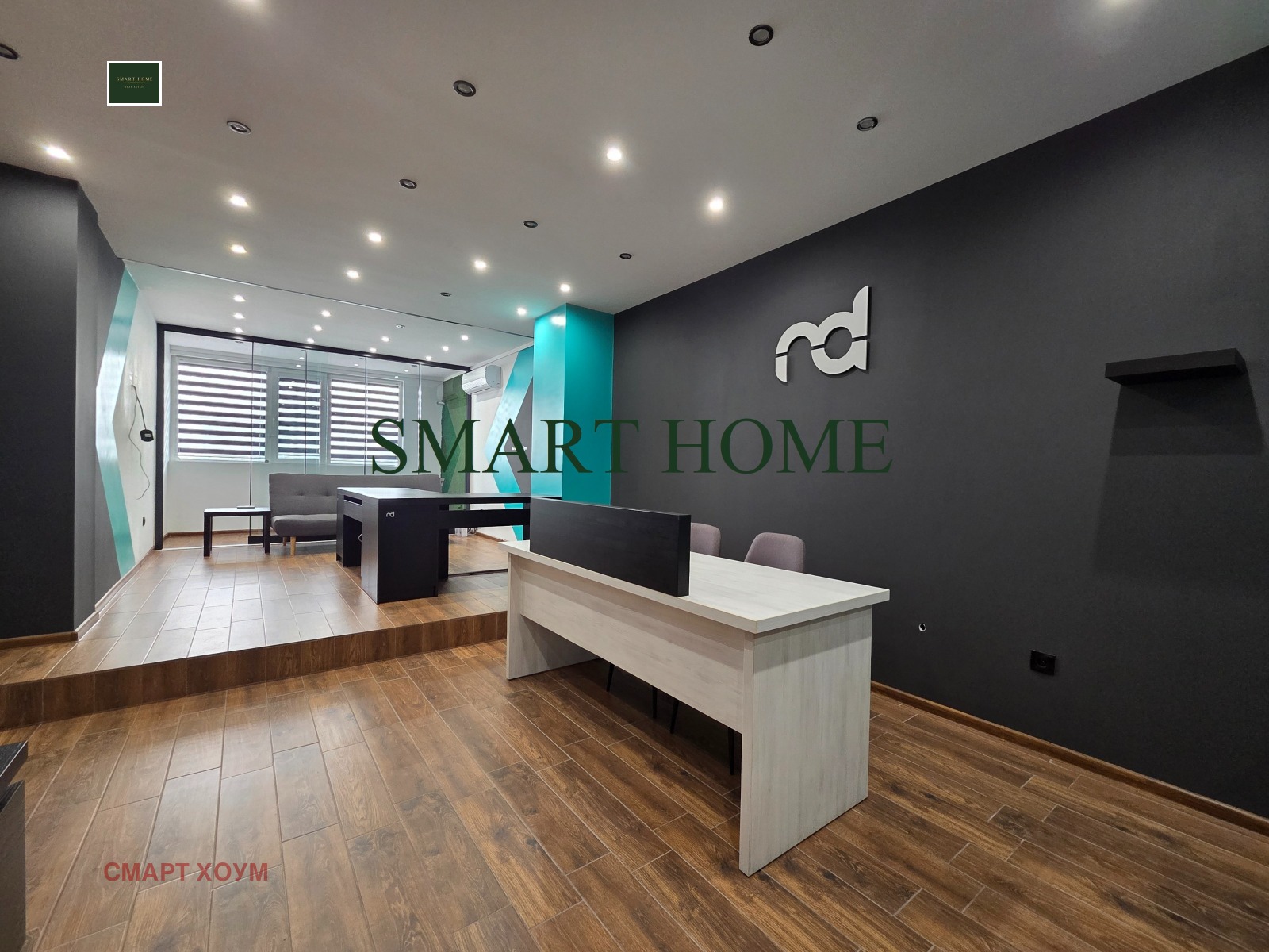 Агенция Смарт Хоум Ви предлагат офис находящ се в бизнес сграда с контрол на достъпа в идеалния център на гр. Велико Търново. Ситуиран на междинен етаж с площ от 51 кв.м., състоящ се от помещение с обособен кухненски бокс и тераса, приемна и санитарен възел. Отдава се обзаведен и оборудван във вида на снимките. Отоплението и охлаждането са решени чрез инверторен климатик. В наемната цена е включен Интернет. Реф. 410