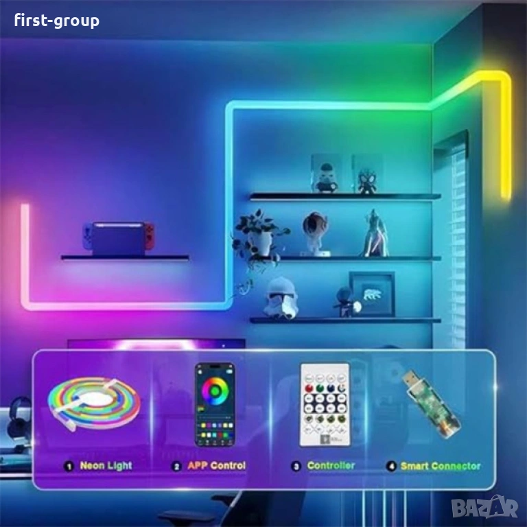 Комплект IC-RGB LED Неонова Лента 5М Bluetooth дистанционно управление