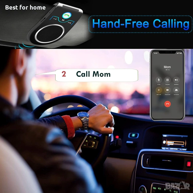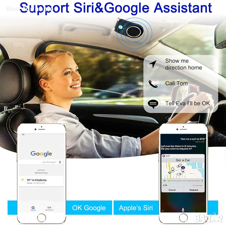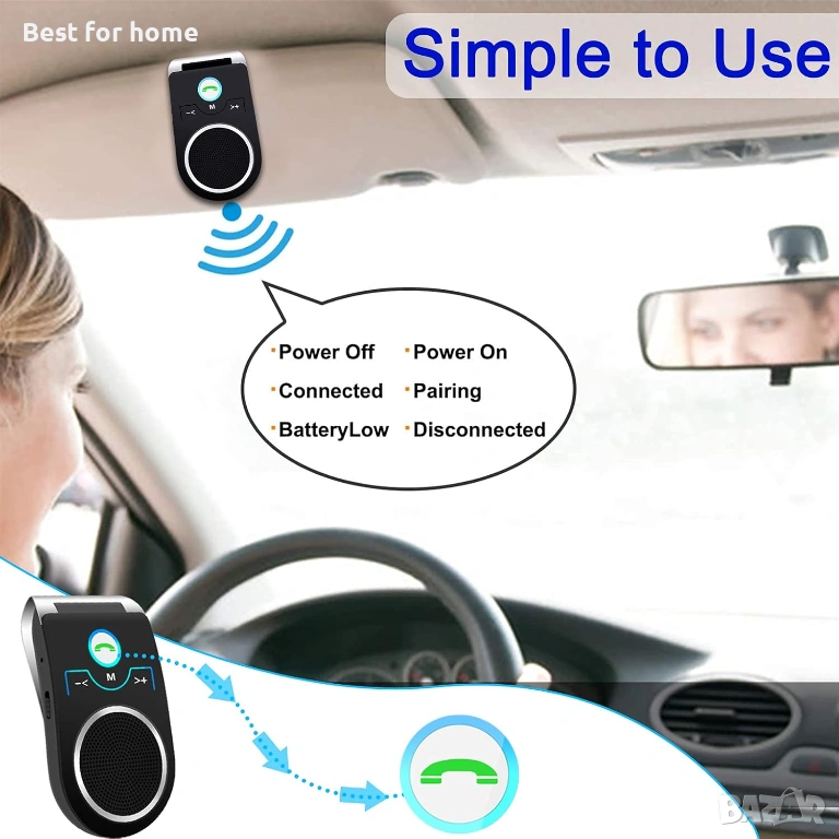 【Поддържа Siri и Google】: Един бутон за активиране на Siri и Google. Когато този Bluetooth високоговорител за кола е сдвоен с вашия телефон, натиснете продължително "📞" за 3 секунди, за да активирате Siri и Google. Можете лесно да управлявате телефона си чрез Siri и Google.