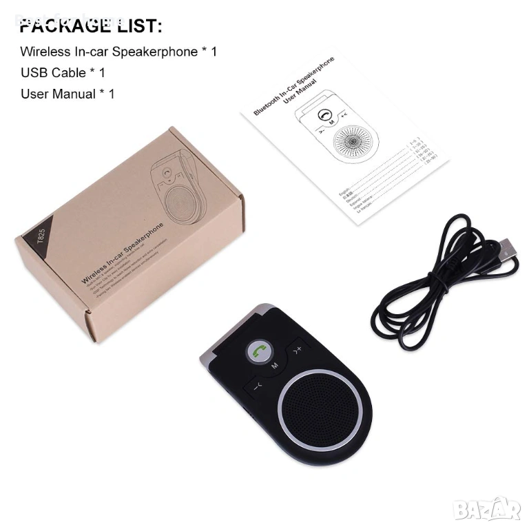 【Лесна настройка】:За дизайна с клипс за задната част, просто трябва да го прикрепите към сенника на колата, след което да активирате Bluetooth функцията, за да търсите това устройство "T-825"