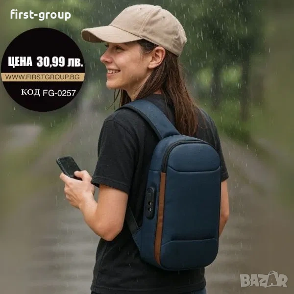 Компактна смарт раница за града – водоустойчива и противоударна, с кабел за зареждане на телефона!