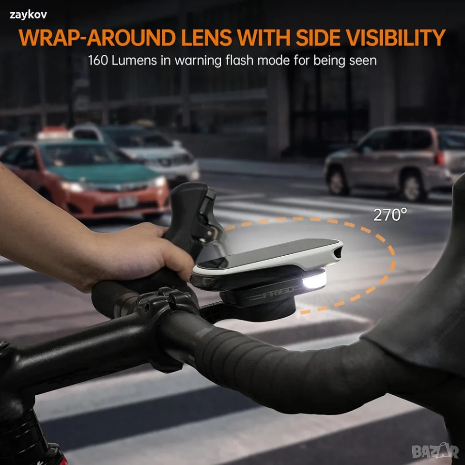 Компактна и водоустойчива велосипедна светлина за безопасност: С водоустойчивост IPX6, предната спомагателна велосипедна светлина FR160 остава хладна в дъждовни дни (не забравяйте да затегнете капака на порта за зареждане); долната част на монтажния езиче също е добре покрита с алуминиева сплав, за да издържи на честа инсталация; тежи само 1,94 унции/0,12 фунта, така че няма да претовари пътуването ви.
