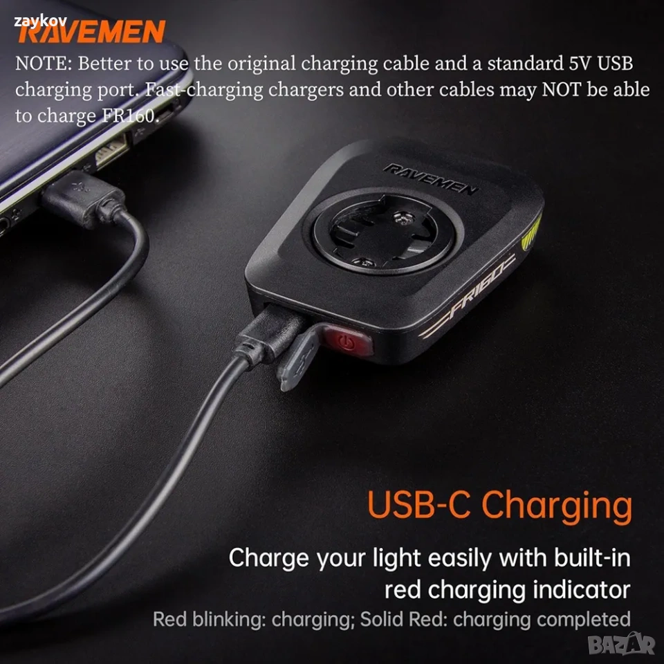 RAVEMEN FR160 Съвместим с велокомпютър Garmin, Велосигнална светлина