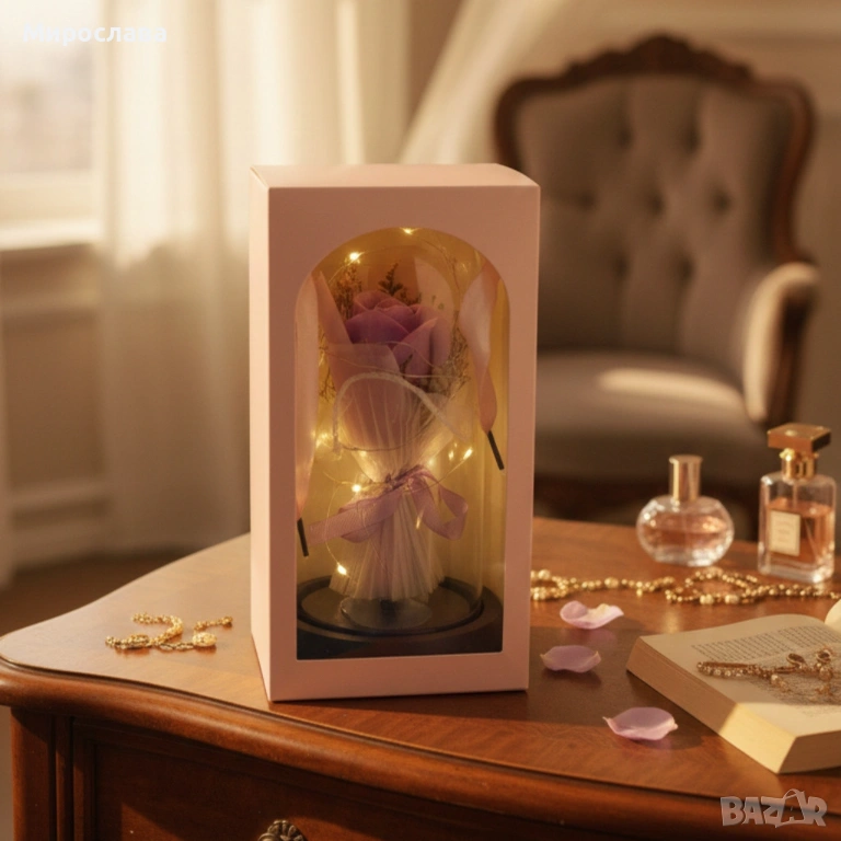Декоративна роза в стъклен купол - В подаръчна кутия → Обява 53047960