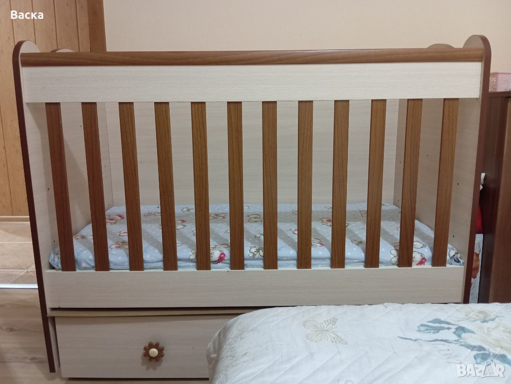 Детско/бебешко дървено легло, снимка 1 - Бебешки легла и матраци - 53048570 Детско/бебешко дървено легло, снимка 2 - Бебешки легла и матраци - 53048570 1/2