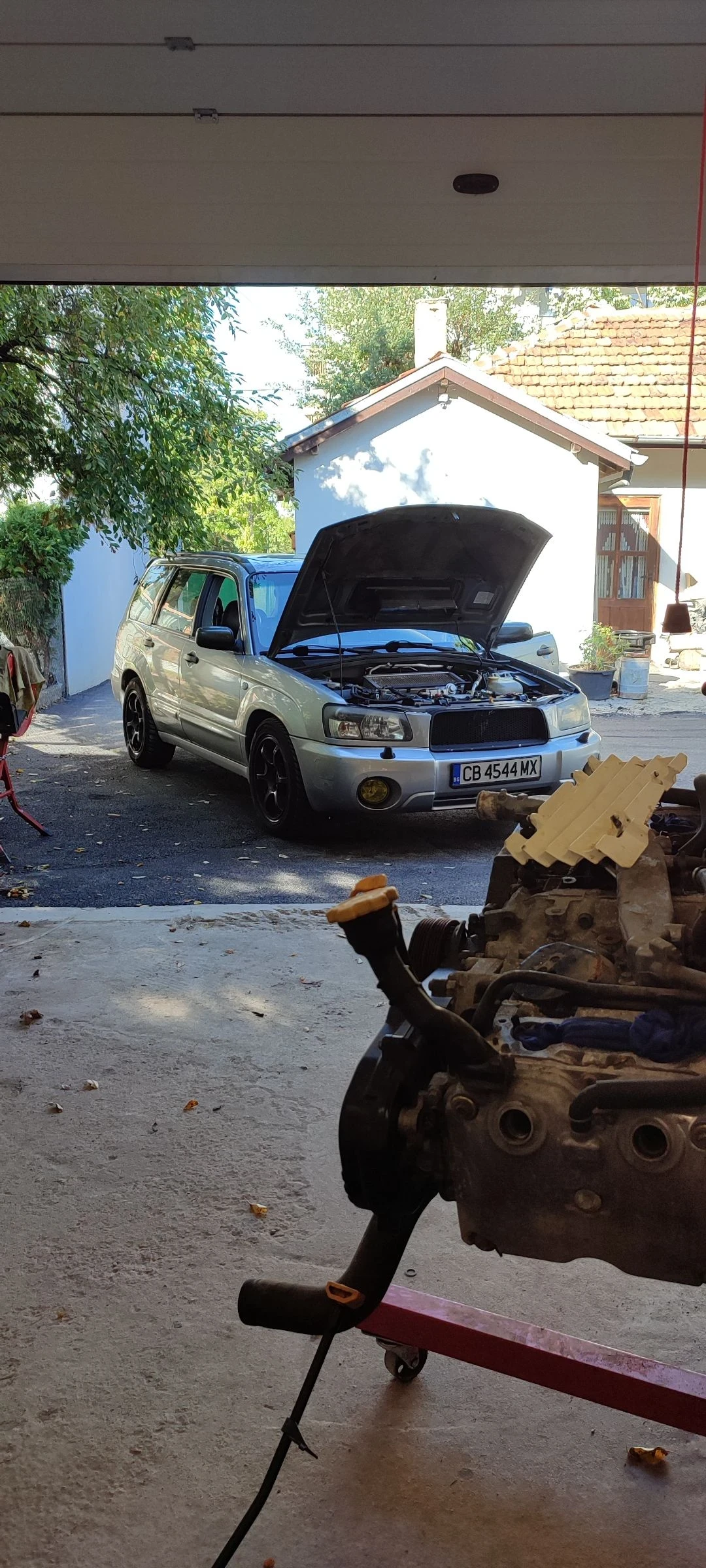 Продавам Форестър 2. 5 ХТ 2005г. в който са вложени много желание и средства през последните 7 години. През цялото време е ползвана ежедневно. Втори собственик съм на колата. Купих я нов внос през 2018г. Има много потенциал, но също така има и забележки, които съм написал в края на списанието. Двигателят е на 2000 км. след основен ремонт на първи ремонтен размер Шпилки за главите ARP. Бутала Mahle. Биели Manley. Лагери - биелни и основни ОЕМ Инжекторите са Bosch 750cc. Всмукателен колектор без TGV-та. Монтиран нов соленоид и регулатор за налягането на турбото, настроен да не превишава 1. 49 бар-а. Турбо VF48 от STi 2011. Кулер от STi 2011. Спортен интейк с K&N филтър на около 5 000 километра. Изпускателна система без катализатори с custom uppipe и отворен downpipe. Цялата е на ф63 с едно спираловидно средно гърне и крайно гърне Scorpion. Звучи страхотно! Рециклиран алтернатор. Сменени са: ангренаж, термостат, водна помпа, течности, пистови ремъци, свещи. Подменени са маркучите на кратерната вентилация и PCV клапана. OEM маслена помпа за STi 2011. Custom подсилен всмукател за маслената помпа. 6 степенна скоростна кутия от STi без DCCD с код TY865WB2DA със сменено масло преди 4000 км. Маховик 8кг. и съединител Exedy на около 20 000км. Предни спирачни апарати Brembo Gold с накладки АТЕ на 2000 км. Задни спирачни апарати от WRX. Спирачни маркучи са стоманено плетени HEL Performance. Алуминиеви предни носачи. Предна стабилизираща щанга 23 мм с тампони и биалетки на 4000 км. Задната стабилизираща щанга 21мм. Амортисьори и пружини от STi . Повдигащи задни подложки за макферсън тампоните 3см. Има предна и задна разпънки между бомбетата. Има допълнителна планка пред серво усилвателя, за намаляване на поддаването на преградната стена между двигателя и купето. Джанти Rota Boost