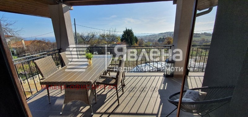 Имотът, който ви предлагаме, е ново строителство къща с модерна архитектура и изобилие от естествена светлина в интериора. На партерно ниво е разположено гаражно помещение с ролетна врата. На първия етаж се влиза в много светло антре, отвеждащо до три просторни и светли спални, голяма дневна и кухненски кът с гледка към морето. От верандата към дневната и кухнята, гледайки морето, неусетно се губите в мечти.