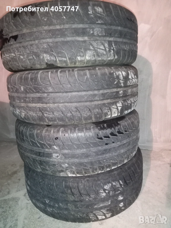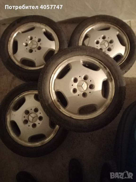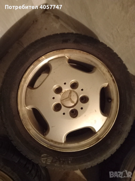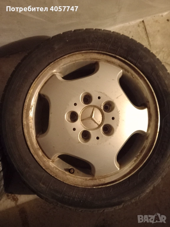 4 броя гуми с джанти за мерцедес 5х112 15 цола гумите са в добро състояние голям грайфер нямат нацъфкано стават за каране може и по отделно гуми 70 евро и джанти 150 евро